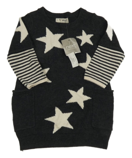 Nové - Antracitové vlnené šaty s hviezdami a pruhy na rukávech Next