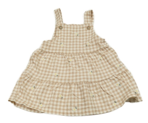 Hnedo-smotanové kockované bavlnené šaty s výšivkami květin C&A