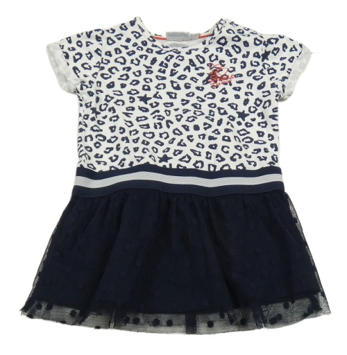 Bielo-tmavomodré vzorované šaty s tylovou sukní