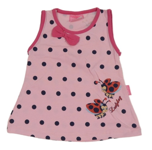 Svetloružová bodkovaná šatová tunika s lienkami a mašlou