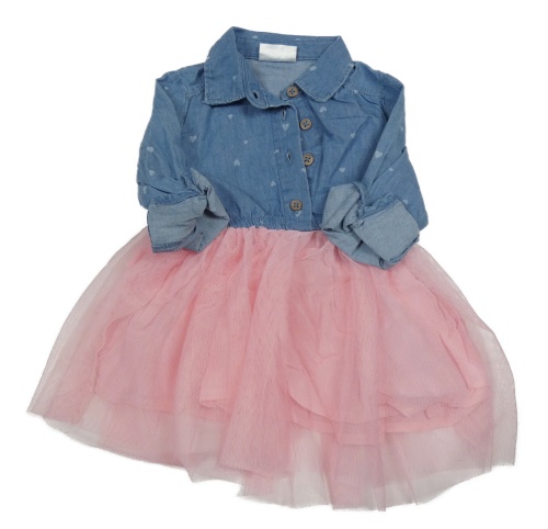 Modro-ružové riflovo/tylové šaty so srdiečkami