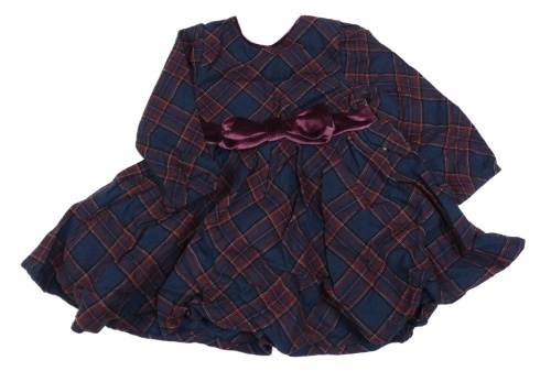 Tmavomodro-červené kockované šaty s mašlou So Cute