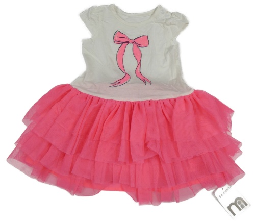 Nové - Bielo-neónově ružové bavlněno/tylové šaty s mašlou Mothercare