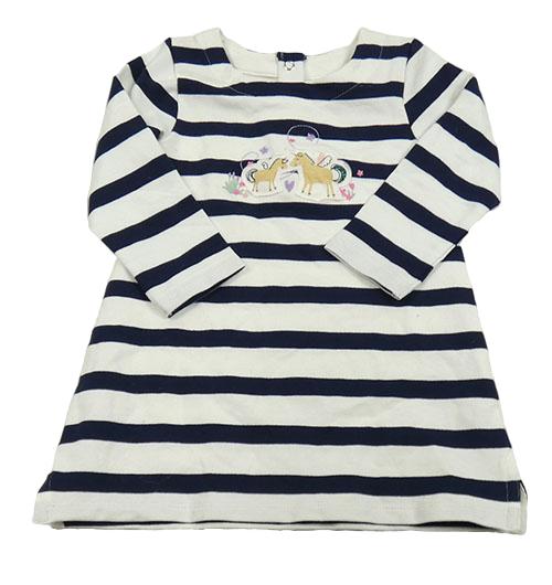 Bielo-tmavomodré pruhované teplákové šaty s koňmi Topomini