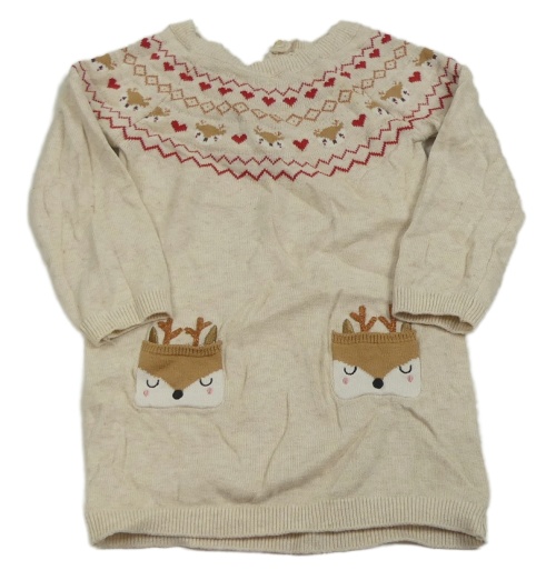 Smetanovo-červené svetrové šaty so sobmi a vreckami Primark