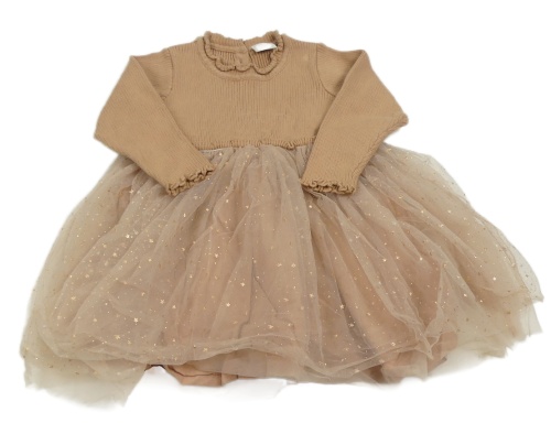 Hnedé rebrované úpletové šaty s tylovou sukní Next