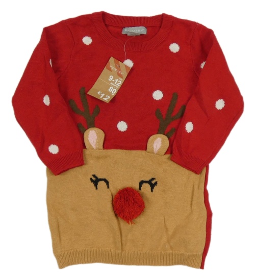 Nové - červené svetrové šaty so sobom a bodkami Primark