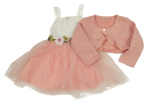 2set- bielo-ružové bavlněno/tylové šaty s kytičkami+ ružové bolerko