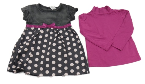 2set - Tmavošedo-bodkovaná é sametovo/plátěné šaty + fuchsiové tričko C&A
