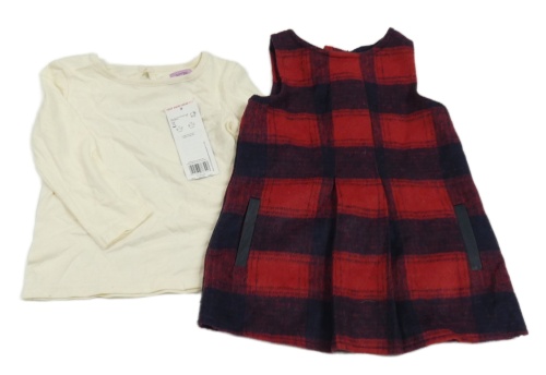 -Nové 2set- tmavomodro-červené kockované šaty+ smotanové tričko F&F