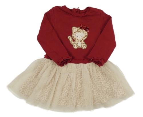 Tmavočerveno-pudrové teplákovo/tylové šaty s mončičákem