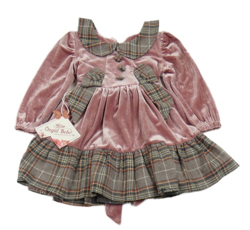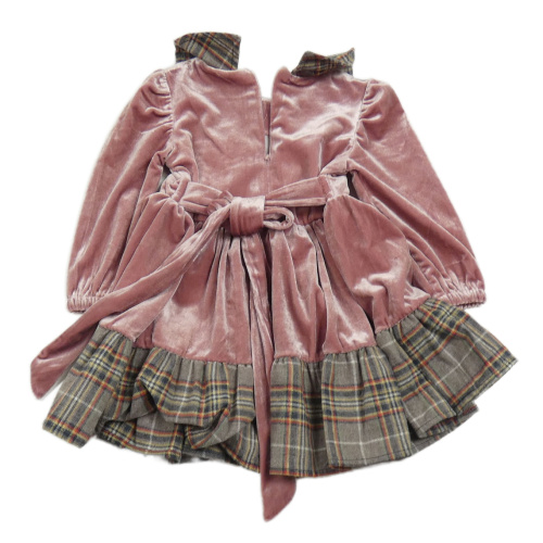 Nové - Starorůžovo-sivé sametovo/kostkované šaty s golierikom a gombíkmi