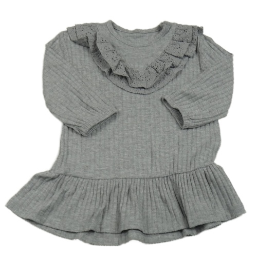 Sivé rebrované úpletové šaty s volániky s madeirou George