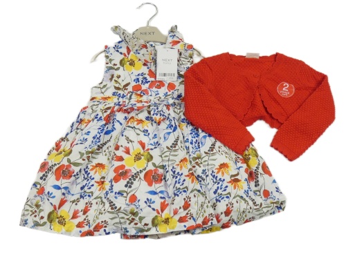 Nové - 2set- biele kvetinové plátenné šaty+ červené bolerko Next