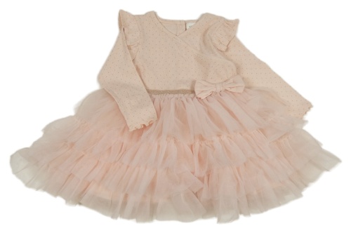 Svetloružové bavlněno/tylové šaty s bodkami a volánikmi Next