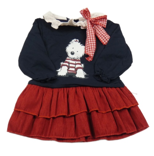 Tmavomodro-červené teplákovo/manšestrové šaty s psíkom