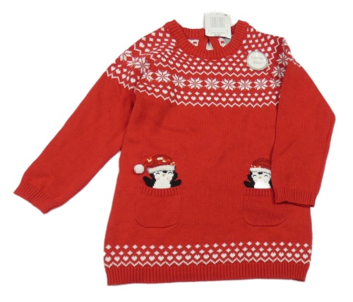 Nové - Červené vzorované pletené šaty s tučňáky Primark