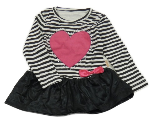 Čierno-biela pruhovaná šatová tunika so srdcem