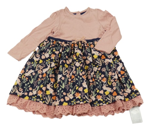 Nové - tmavomodro-pudrové šaty so zajačikmi a kvietkami a volánikom s madeirou PRIMARK