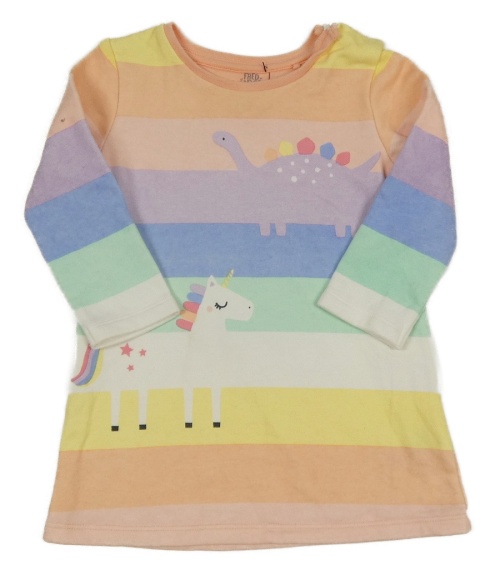 Farebné pruhované teplákové šaty s dinosaurom a jednorožcom F&F