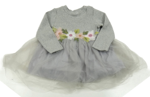 Svetlosivé rebrované šaty s kvetmi a tylovou sukní