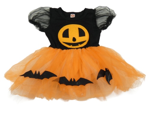 Čierno-oranžové šaty s všitým body a tekvicou a netopýry