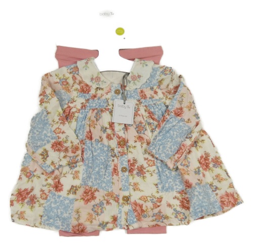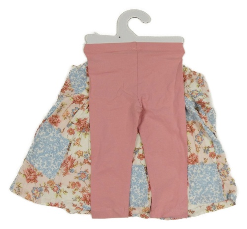 Nové - 2 set - ružové legíny + smetanovo-modré kvetované šaty Tu