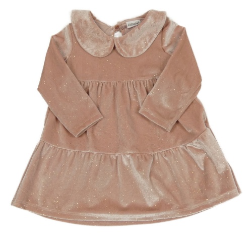 Svetloružové zamatové trblietavé šaty s golierikom F&F