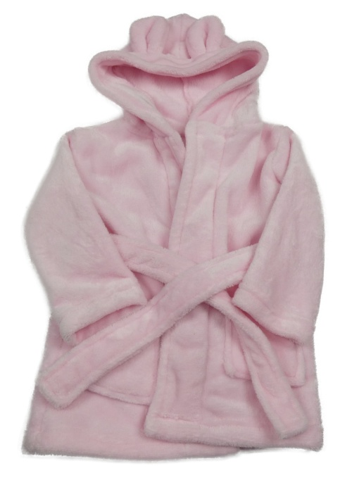 Ružový plyšový župan s nápisom a kapucňou