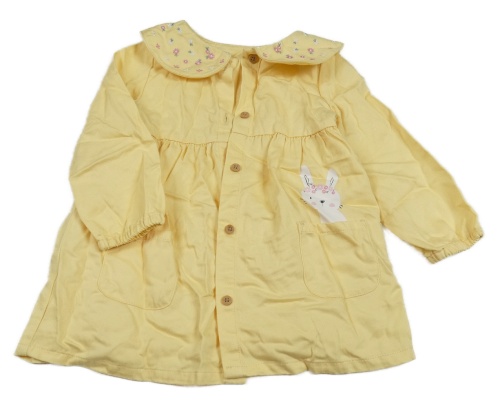 Žluté propínací šaty riflového vzhledu so zajačikom a golierikom s kvetmi St. Bernard
