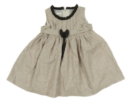 Béžové melírované bavlnené šaty s kávovým volánikom