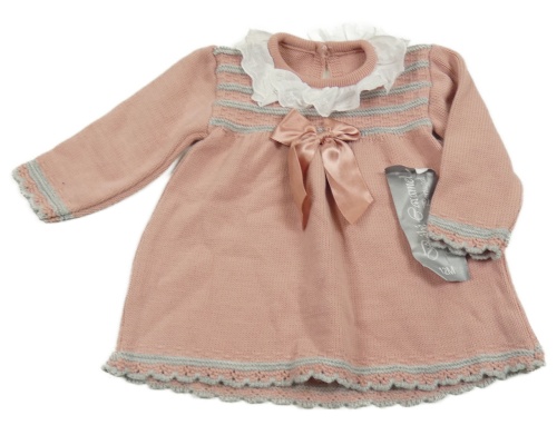 Nové - Ružovo-sivé pletené šaty s volánikom a mašlou