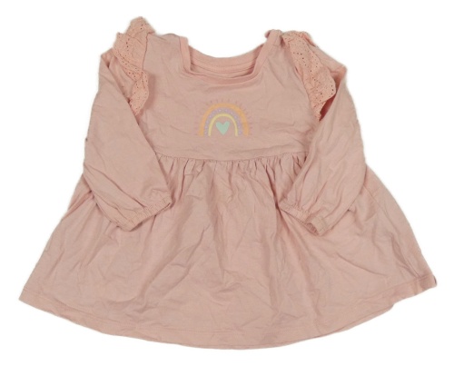 Ružové bavlnené šaty s dúhou a volániky s madeirou Matalan