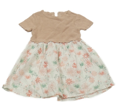 Svetloružové pletené šaty s bílou květovanou sukní g