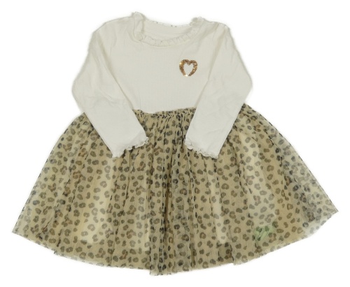 Bielo-béžovo-čierne rebrované šaty s tylovou sukní s leopardím vzorom Matalan