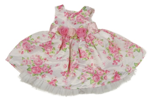 Bielo-ružové kvetované saténové šaty s 3D kvety