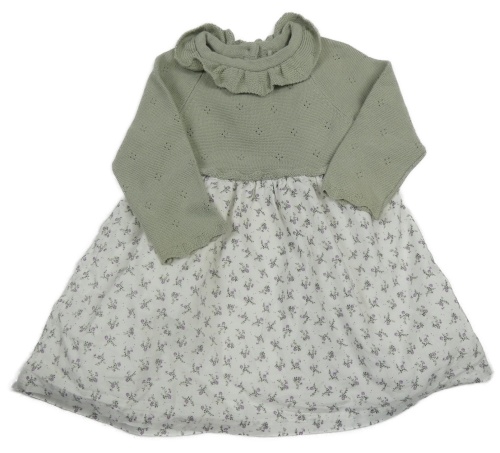 Bílo-khaki plátěno/pletené šaty s kvietkami Tu