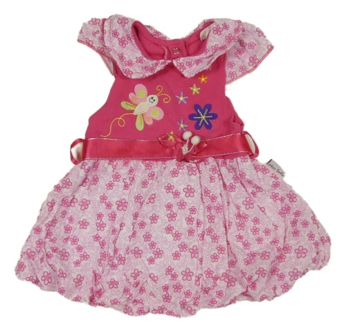 Tmavorůžovo-biele bavlněno/plátěné šaty s motýlom a kvetinami