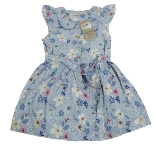 Nové - Svetlomodré plátenné šaty s kvietkami a opaskom George