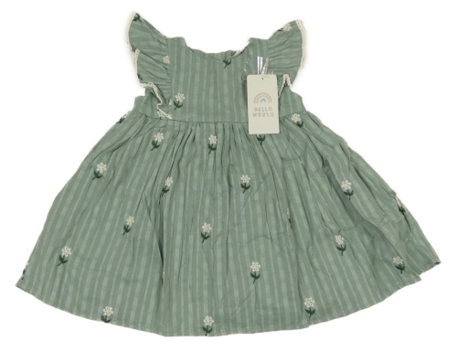 Nové - Zelenošedé pruhované plátenné šaty s kvietkami Hello World