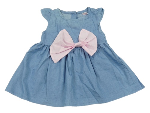 Modré šaty riflového vzhledu s ružovou mašlou