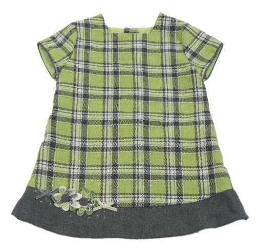 Zeleno-bielo-sivé kockované šaty s kvetmi