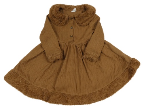 Hnedé rebrované šaty s chlupatými lemy Shein
