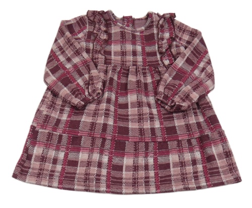 Vínovo-starorůžovo-fuchsiové kockované šaty s volánikmi George