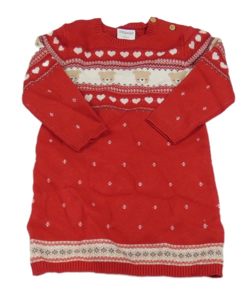 Červeno-biele pletené šaty so vzorom a medvedíkmi F&F