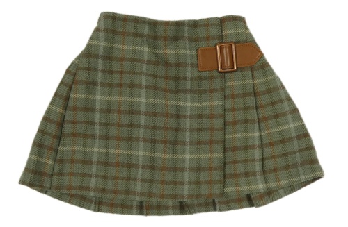 Kaki-hnedo-béžová kockovaná vlnená sukňa s přezkou Next