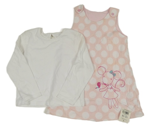 2set - Broskvové bavlnené zateplené šaty s myškou a puntíky + biele tričko George
