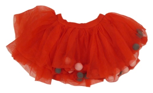 Červená tylová tutu sukňa s bambulemi Tu