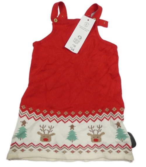 Nové - Červeno-smotanové pletené na traké šaty so sobmi a stromky F&F