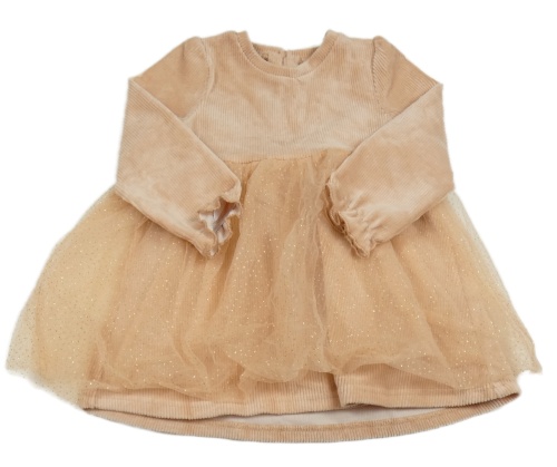 Marhuľové zamatové rebrované šaty s tylovou sukní